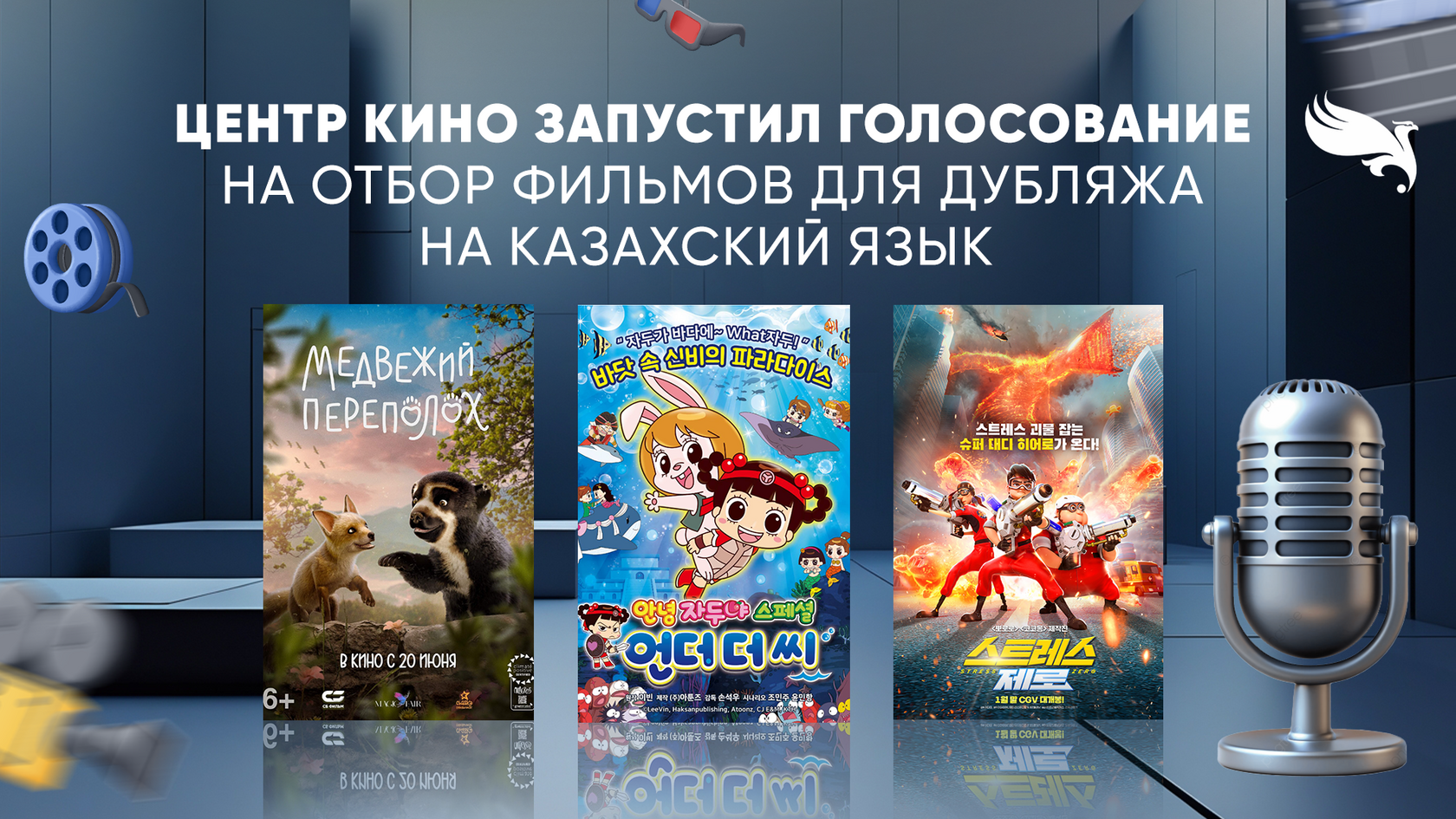 Государственный центр поддержки национального кино сообщает о запуске предварительного онлайн-голосования по отбору детских анимационных фильмов и фильмов для семейного просмотра, которые планируется дублировать на казахский язык.