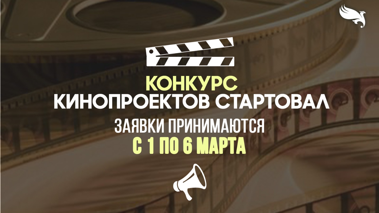 С 1 марта в Казахстане начинается прием документов на первый этап конкурсного отбора кинопроектов, претендующих на государственную финансовую поддержку. Конкурс проводится Государственным центром поддержки национального кино при поддержке Министерства культуры и информации Республики Казахстан и направлен на развитие национального кинематографа, поддержку отечественных авторов и создание социально и культурно значимых фильмов. Прием заявок продлится до 6 марта включительно, до 23:59 по времени Астаны.